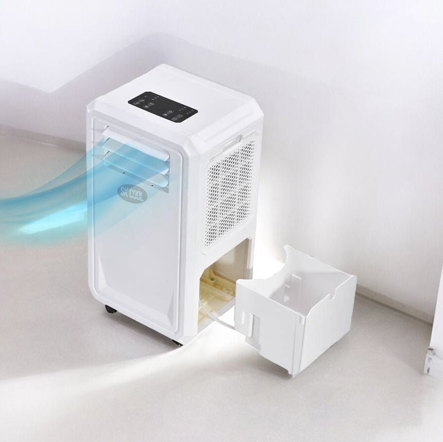 The SK COOL portable Air Cooler is a 3-in-1 device that functions as an air cooler, dehumidifier, and air purifier. It provides energy-efficient cooling, reduces humidity, and purifies the air for a comfortable indoor and outdoor environment.